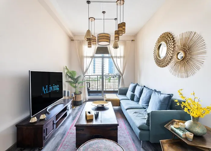 Appartement Aliving Elegant & Cozy 1Br I Mazaya 11, Liwan à Dubaï de 86 m² se situe à 4 km de Palm Jumeirah et offre un accès pratique à de nombreuses attractions à proximité.